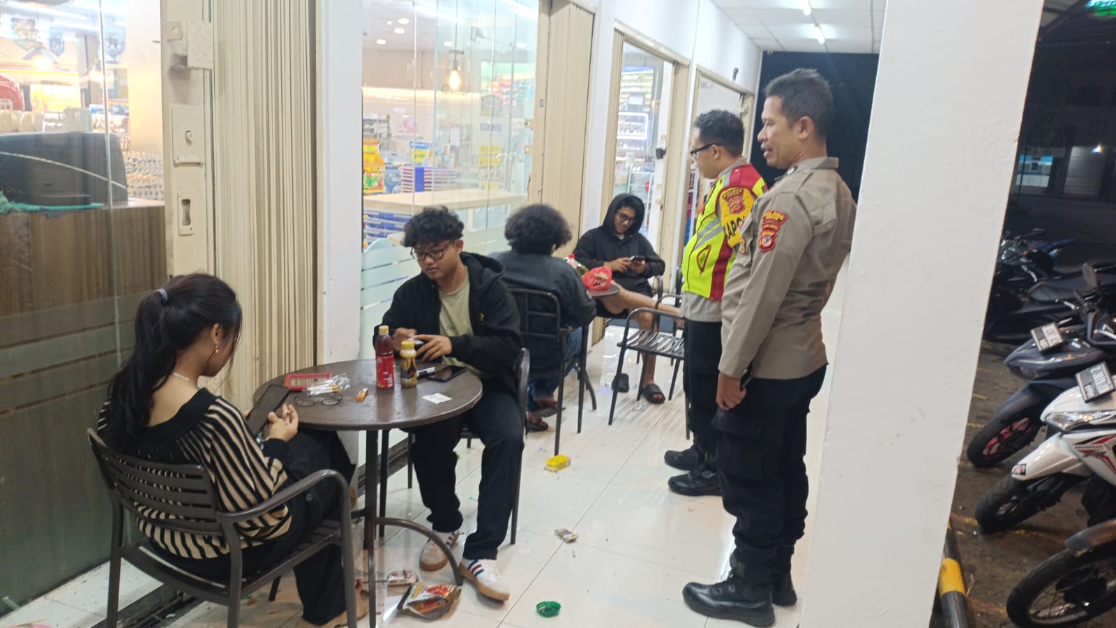 Dari hasil patroli, situasi terpantau aman dan kondusif. Tidak ditemukan kejadian menonjol. Petugas turut membubarkan sekelompok remaja yang nongkrong hingga larut malam untuk mencegah potensi tawuran dan balap liar.
