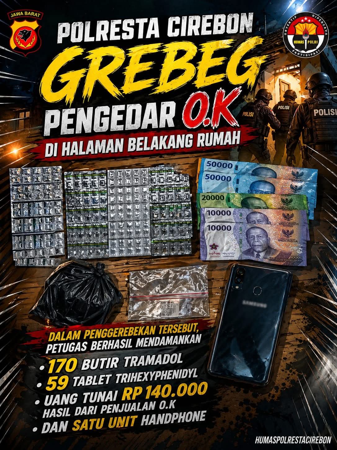 POLRESTA CIREBON GEREBEK PENGEDAR O.K DI HALAMAN BELAKANG RUMAH ​