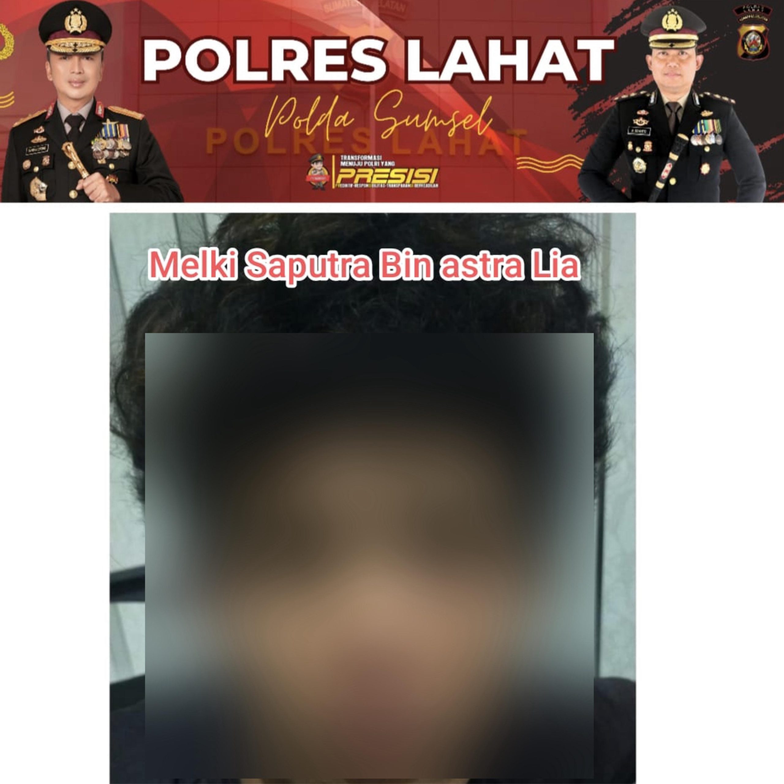Pengungkapan kasus berdasarkan Laporan Polisi LP/B/195/IV/2026/SPKT/Polres/Polda Sumsel tanggal 25 april 2026 dengan tersangka :